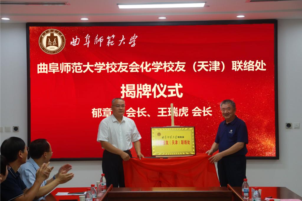 华体会体育(中国)hth官方网站校友会化学与化工学院分会会长郁章玉和王瑞虎共同为化学校友(天津)联络处揭牌。